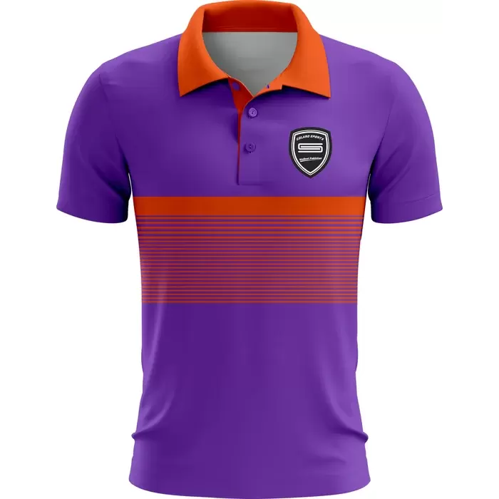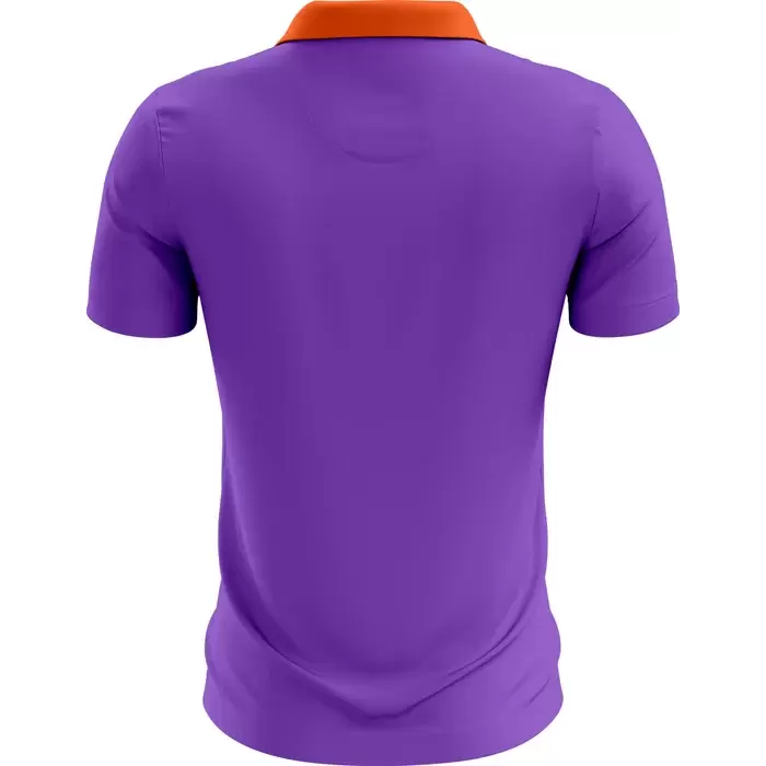 Colaro Sports, a premium badminton uniform manufacturer, presents its signature orange and purple uniform. Colaro Sports' badminton uniform is dominated by a wide horizontal orange chest band containing multiple speed stripes. The vibrant orange collar and two-button placket complete a design that radiates confidence and team spirit. Expertly crafted using full sublimation production, this badminton jersey guarantees a perfect fit and long-lasting performance. The dark shield emblem on the left chest is ready for your custom logo.