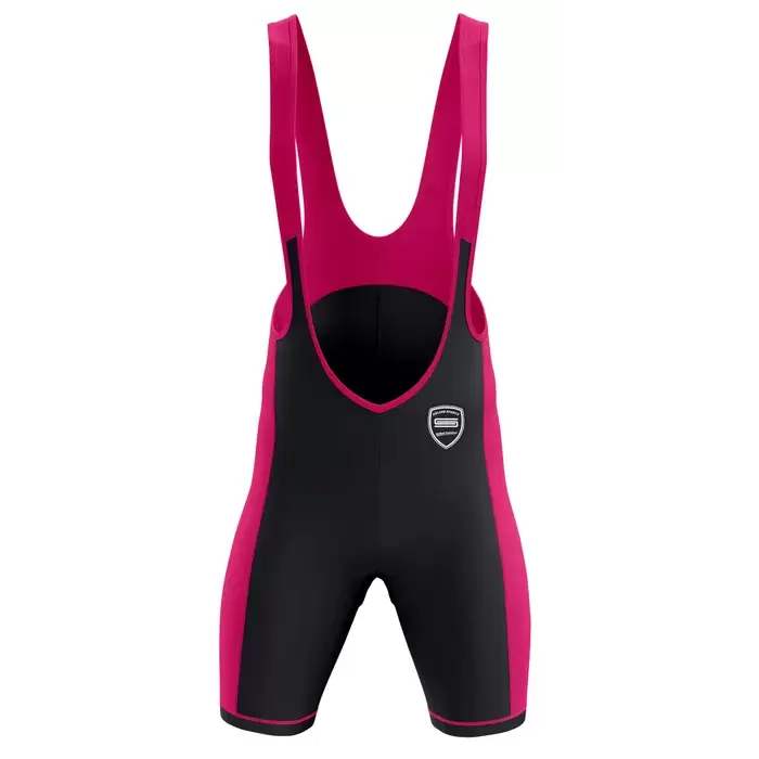 Discover premium cycling uniforms from Colaro Sports, the leading manufacturer of high-performance cycling singlets designed for champions. Colaro Sports black fuchsia cycling bib shorts, premium cut & sew featuring vibrant hot pink side panels and straps. Built with high-density, compression fabric and laser-cut grippers. The ultimate custom black and pink cycling bib singlet for teams.