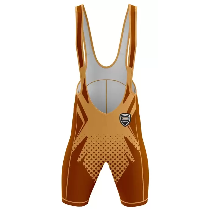 Discover premium cycling singlets from Colaro Sports, the leading manufacturer of high-performance cycling singlets designed for champions. Colaro Sportssublimation cycling bib uniforms in stunning brown and tan shades. This one-piece cycling bib singlet features geometric patterns, gradient dark brown dots rising from the crotch, and superior moisture-wicking fabric.