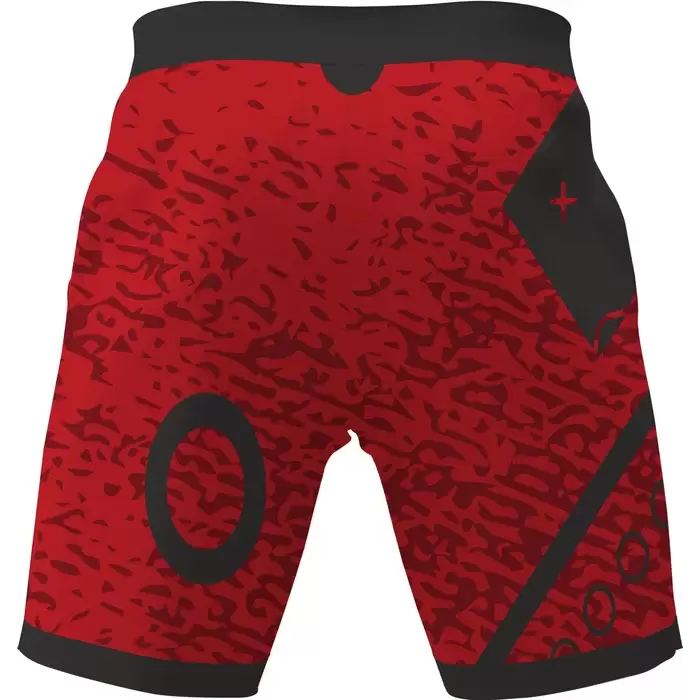Discover premium Gym Shorts from Colaro Sports, the leading manufacturer of high-performance gym shorts designed for extreme workouts. Colaro Sports' red camo boxer shorts deliver bold athletic style with military-inspired design. The intricate red and black camouflage pattern features distinctive oval shapes and a cross detail for unique visual interest. The black waistband with white elastic ensures superior fit, while the embroidered badge signifies premium quality. Soft, stretchy fabric provides exceptional comfort for modern athletes demanding style and performance.