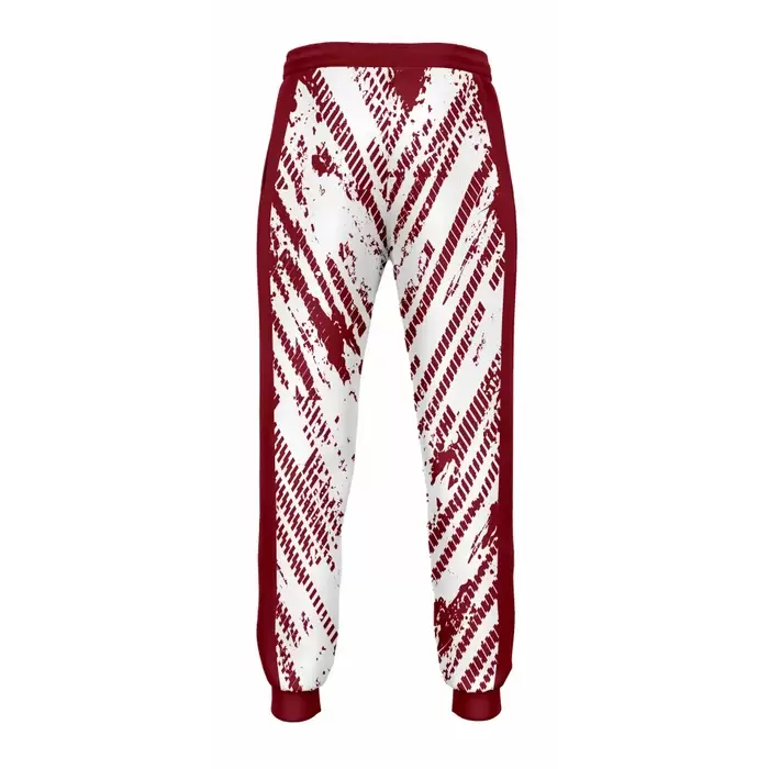 Colaro Sports, a premium sweatpants manufacturer, presents its signature burgundy stripes sweatpant. Colaro Sport brings contemporary energy to athletic wear with sweatpants that balance performance and modern aesthetics. The design features a clean white base accented by bold burgundy stripes and a splattered effect that creates a distressed yet stylish vibe. This dynamic pattern reflects motion and energy, making the joggers ideal for athletes who want their gear to look as powerful as their performance.