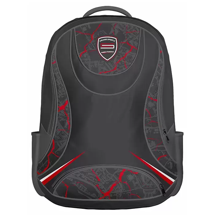 Colaro Sports, a premium Bags manufacturer, presents its signature black backpack. Colaro Sports brings innovation to life with this futuristic black sublimation backpack designed for those who value both style and performance. The bold “Colaro Sports” shield logo at the center symbolizes strength and global vision, while the cracked circuit-inspired patterns in red, white, and dark gray give the bag a high-tech, modern edge. Its sublimation printing ensures long-lasting color depth and sharp detailing.