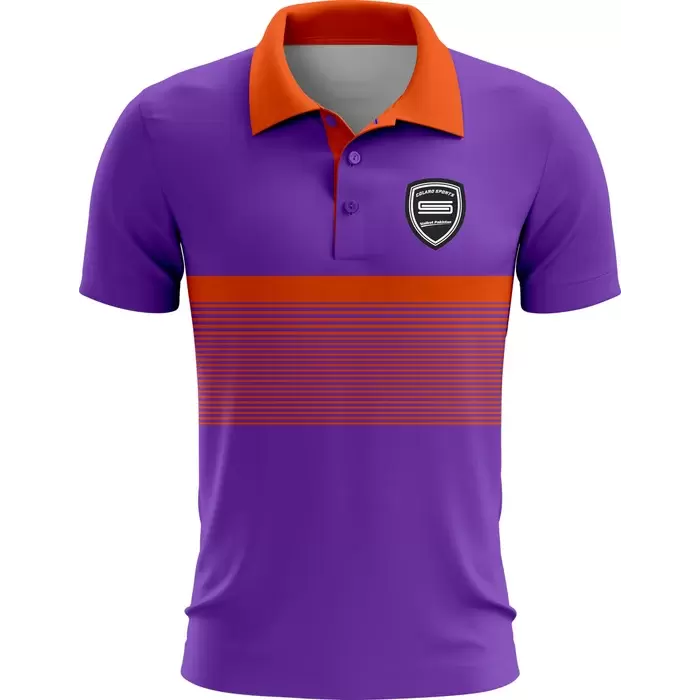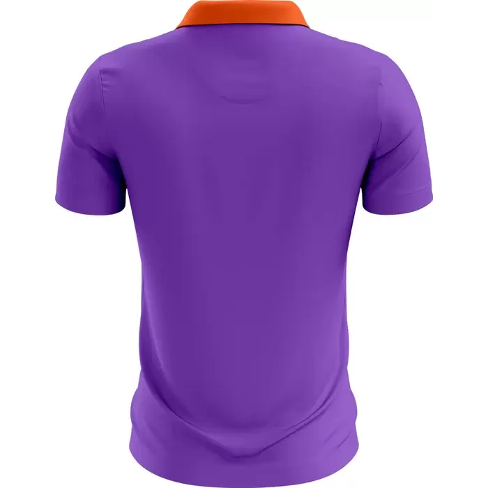 Colaro Sports, a premium badminton uniform manufacturer, presents its signature orange and purple uniform. Colaro Sports' badminton uniform is dominated by a wide horizontal orange chest band containing multiple speed stripes. The vibrant orange collar and two-button placket complete a design that radiates confidence and team spirit. Expertly crafted using full sublimation production, this badminton jersey guarantees a perfect fit and long-lasting performance. The dark shield emblem on the left chest is ready for your custom logo.