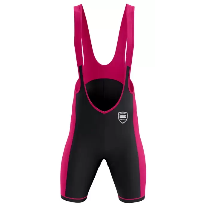 Discover premium cycling uniforms from Colaro Sports, the leading manufacturer of high-performance cycling singlets designed for champions. Colaro Sports black fuchsia cycling bib shorts, premium cut & sew featuring vibrant hot pink side panels and straps. Built with high-density, compression fabric and laser-cut grippers. The ultimate custom black and pink cycling bib singlet for teams.