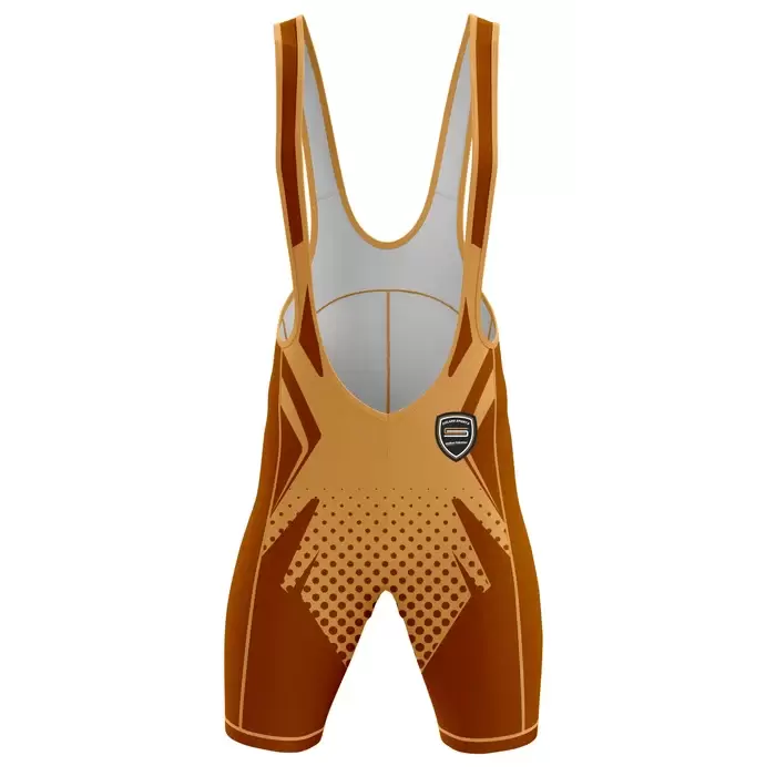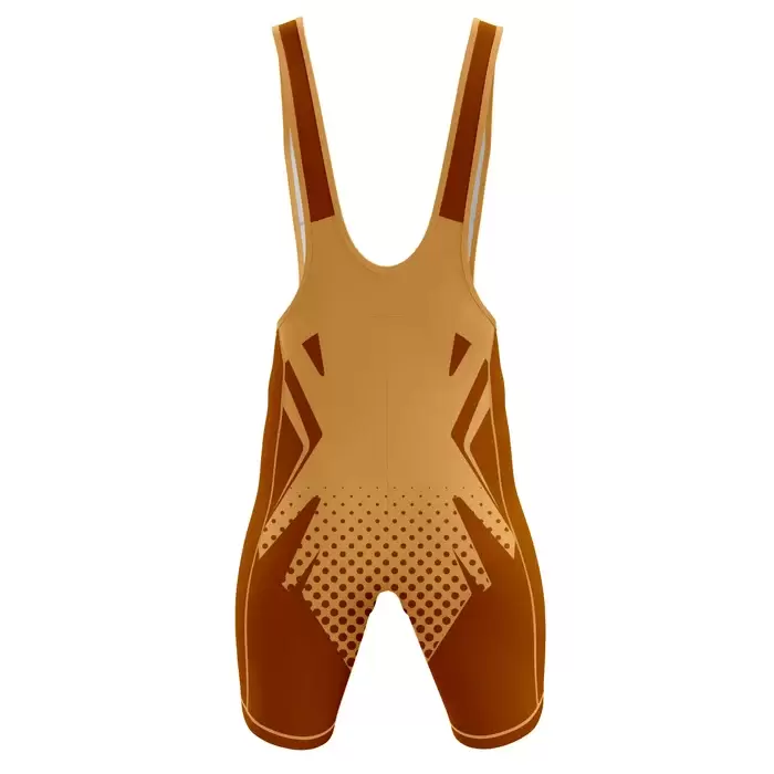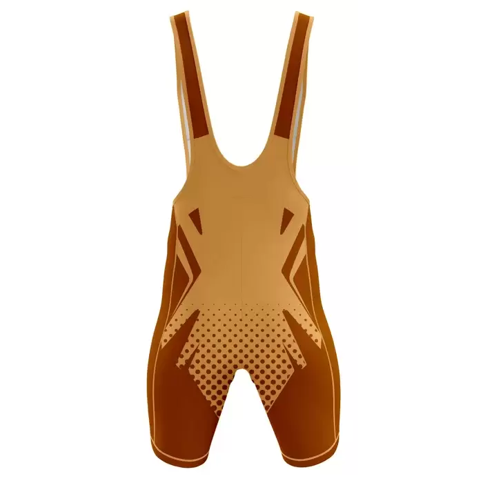 Discover premium cycling singlets from Colaro Sports, the leading manufacturer of high-performance cycling singlets designed for champions. Colaro Sportssublimation cycling bib uniforms in stunning brown and tan shades. This one-piece cycling bib singlet features geometric patterns, gradient dark brown dots rising from the crotch, and superior moisture-wicking fabric.