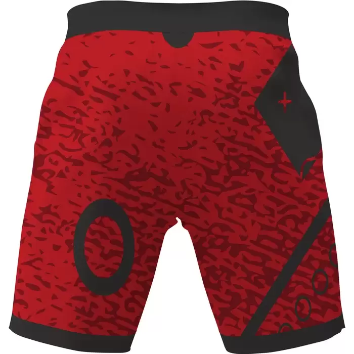 Discover premium Gym Shorts from Colaro Sports, the leading manufacturer of high-performance gym shorts designed for extreme workouts. Colaro Sports' red camo boxer shorts deliver bold athletic style with military-inspired design. The intricate red and black camouflage pattern features distinctive oval shapes and a cross detail for unique visual interest. The black waistband with white elastic ensures superior fit, while the embroidered badge signifies premium quality. Soft, stretchy fabric provides exceptional comfort for modern athletes demanding style and performance.
