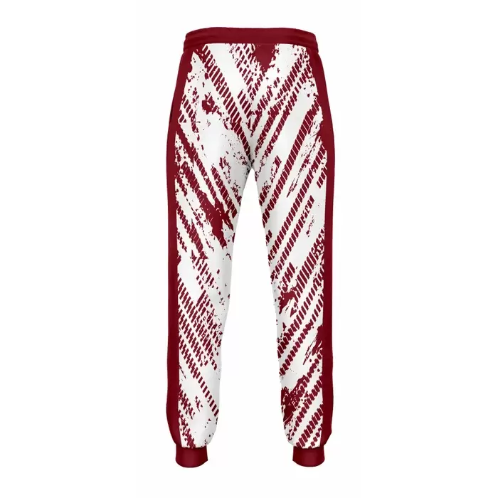 Colaro Sports, a premium sweatpants manufacturer, presents its signature burgundy stripes sweatpant. Colaro Sport brings contemporary energy to athletic wear with sweatpants that balance performance and modern aesthetics. The design features a clean white base accented by bold burgundy stripes and a splattered effect that creates a distressed yet stylish vibe. This dynamic pattern reflects motion and energy, making the joggers ideal for athletes who want their gear to look as powerful as their performance.